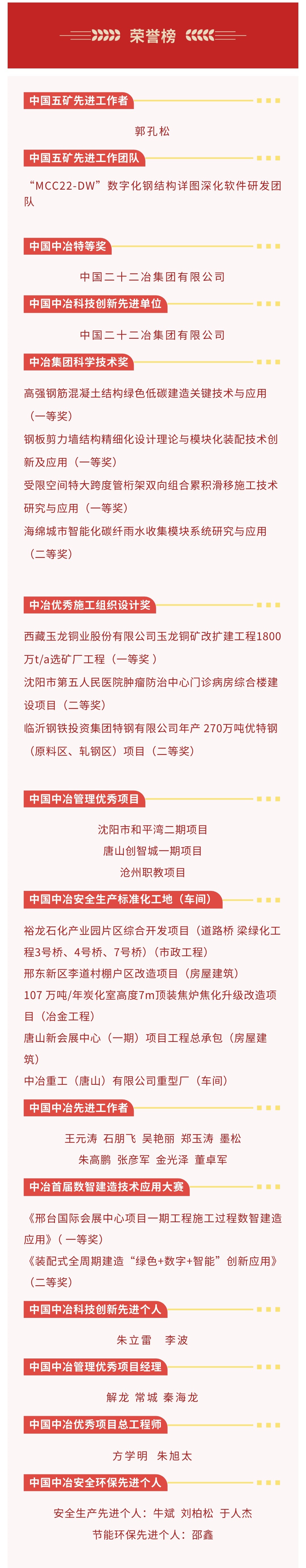 奮楫爭先 載譽前行|中國二十二冶榮獲中國五礦、中國中冶多項榮譽表彰