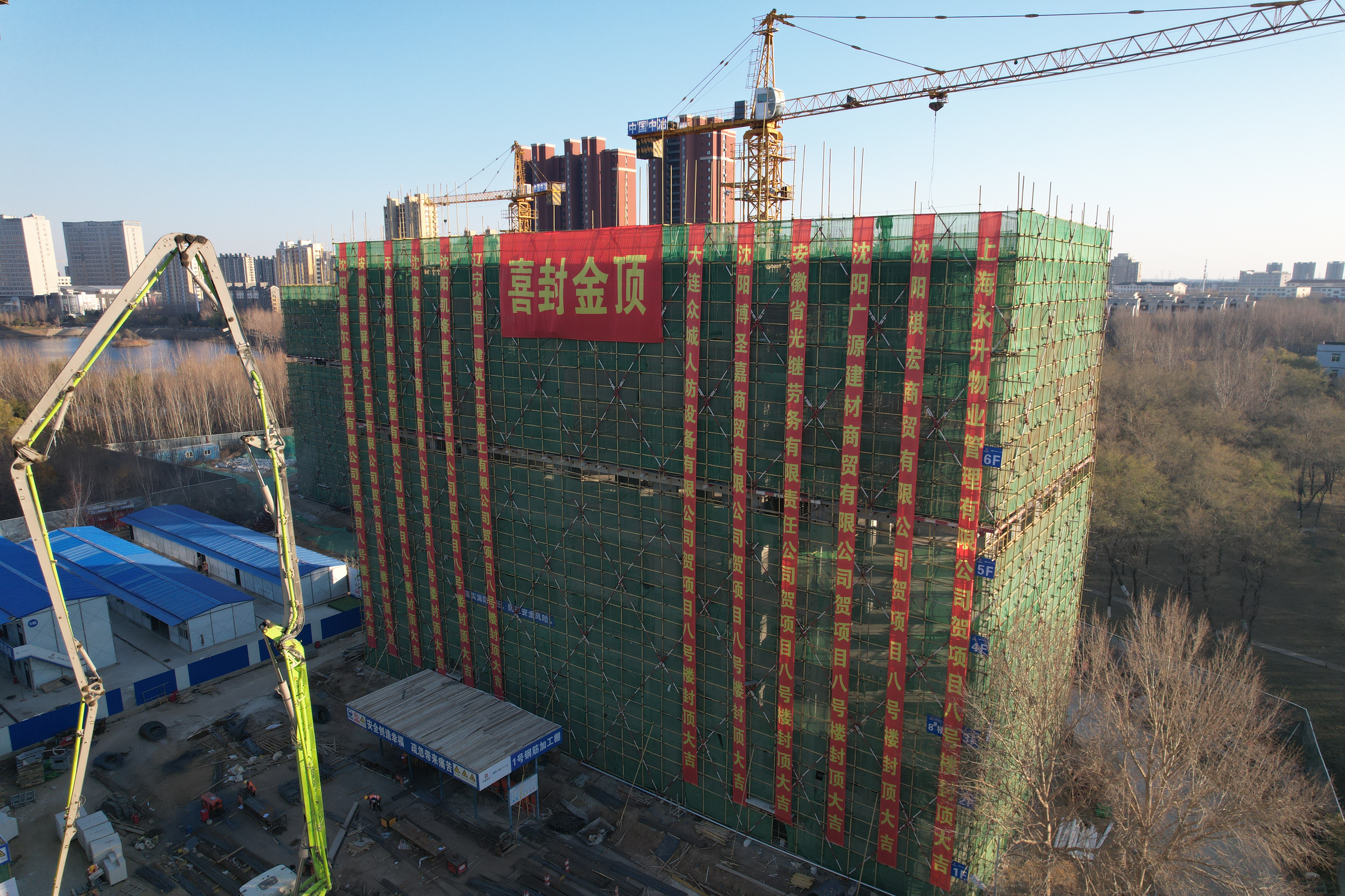 一公司沈陽化工大學(xué)新建學(xué)生宿舍一期建設(shè)項(xiàng)目首棟建筑主體結(jié)構(gòu)封頂